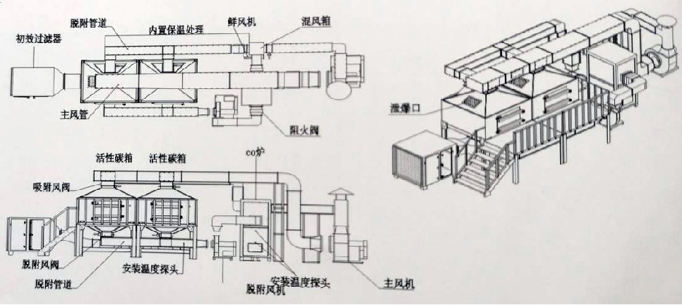 ① 主要适用于废气沸点在(50~100℃)的易吸附易脱附的废气;