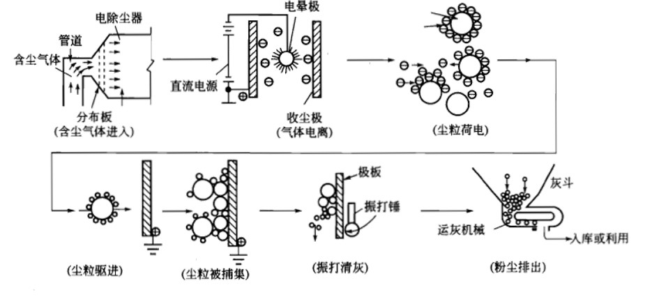 电除尘利用高压电场产生的静电力的作用实现固体粒子或者液体粒子与气流分离。